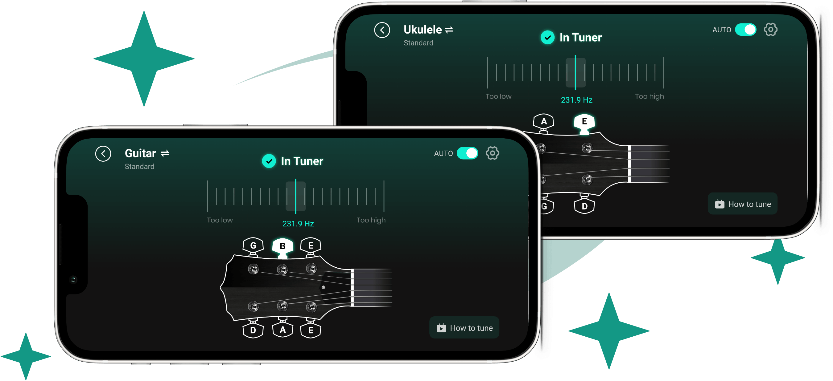 快速轻松地为你的吉他和尤克里里调音。无论是标准调音还是特殊调音,它都能满足你的所有需求——完全免费!