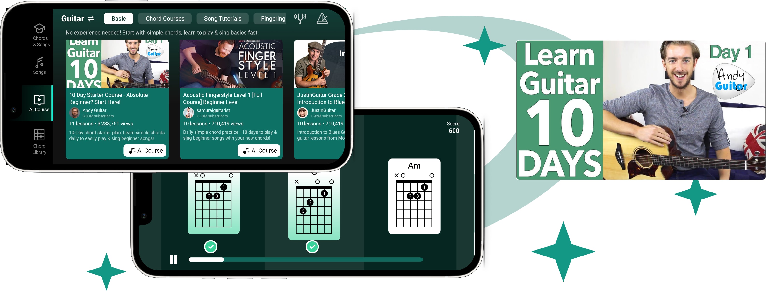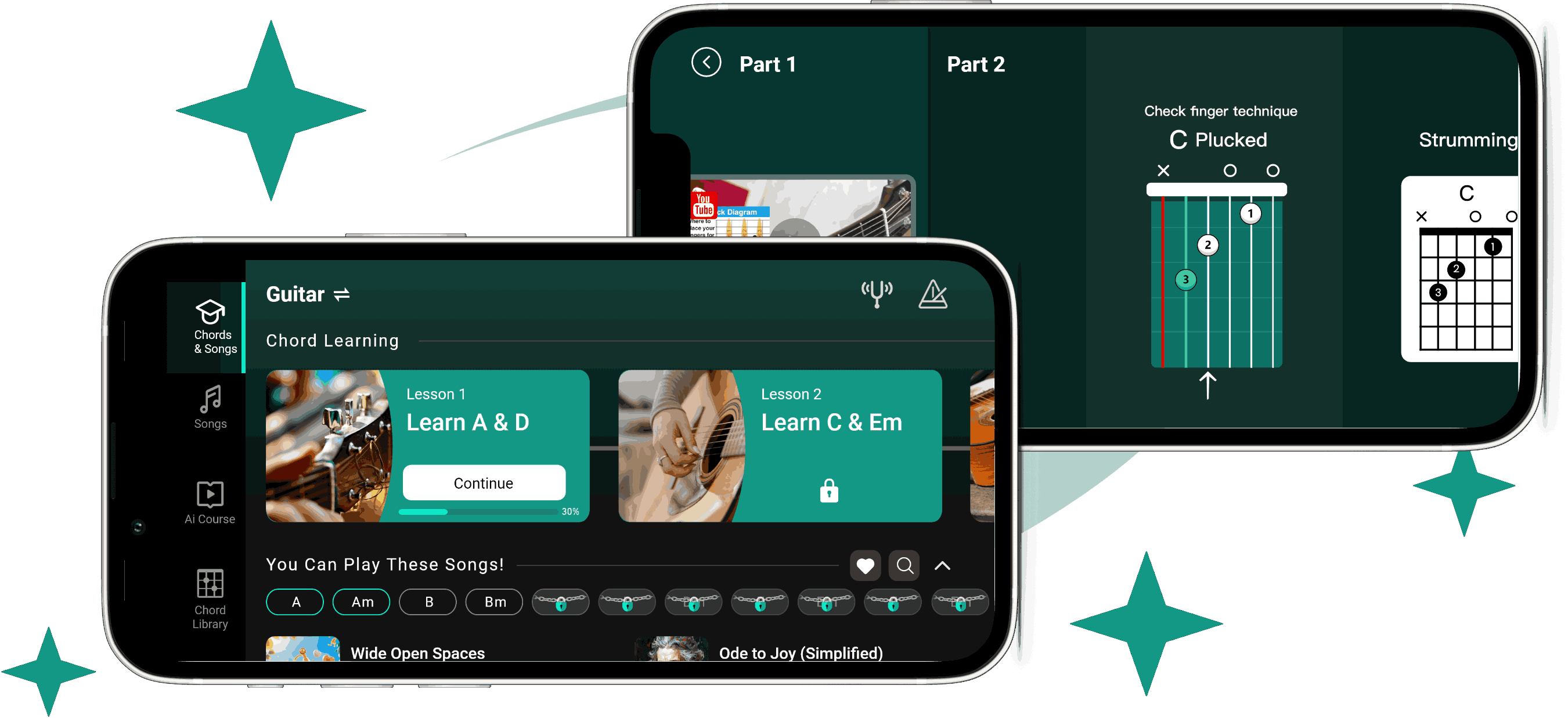 跟随引导式课程,循序渐进学习,掌握和弦知识,按照自己的节奏学会弹唱歌曲。